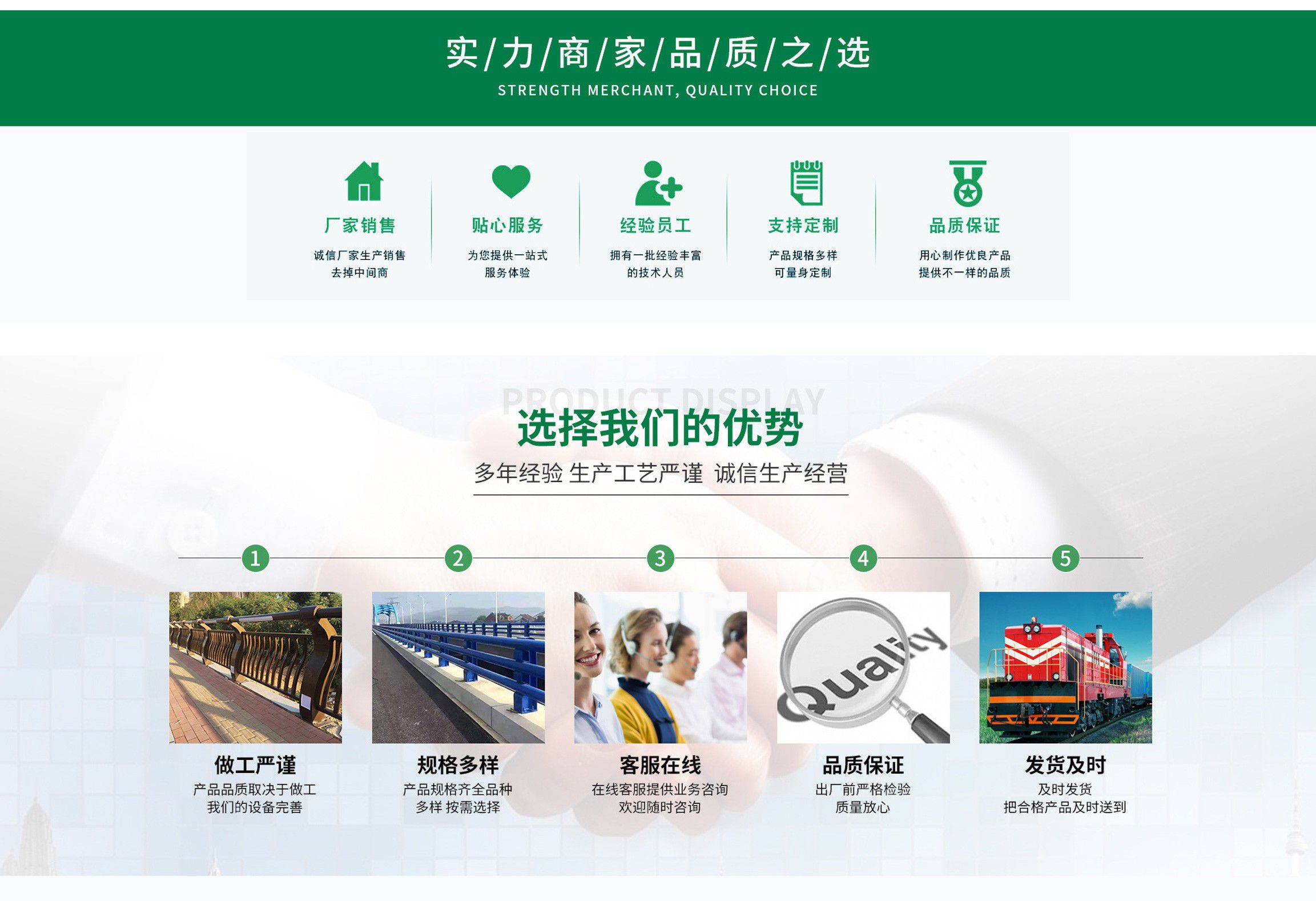 山東崇發金屬制品有限公司位于“江北水城“”之稱的聊城,地理位置優越,交通方便。公司占地面積50000平方米,建有標準化廠房及辦公樓等配套設施,建筑面積30000平方米?! 」臼且患以O計、銷售、安裝為一體的護欄工程企業,本公司主要生產各種燈光護欄,防撞護欄,橋梁護欄,鋁合金護欄,不銹鋼復合管護欄,河道護欄等。公司擁有先進的全自動激光切割設備和機器人焊接設備,能夠保證護欄產品的精度和表面光潔度。 公司優勢一、專業性強1、設計、提供和安裝各種護欄工程。擁有護欄設計、銷售與安裝為一體的完整體系。 2、應用領域:防撞護欄、橋梁護欄、河道護欄、燈光護欄、道路護欄等?! 《r格優勢公司擁有獨立的生產車間,無論管材還是立柱鋼板及表面處理都可在本公司內自行加工完成,減少中間環節,給客戶提供合理的價格,優質的產品?! ∥覀儗⑹冀K堅持“開拓國際市場,信譽就是效益”的經營理念,憑借一批思想統一、團結拼搏、業務熟練、對客戶高度負責的團隊力量,與廣大客戶攜手共進,合作雙贏,一起迎接明天的輝煌!...
